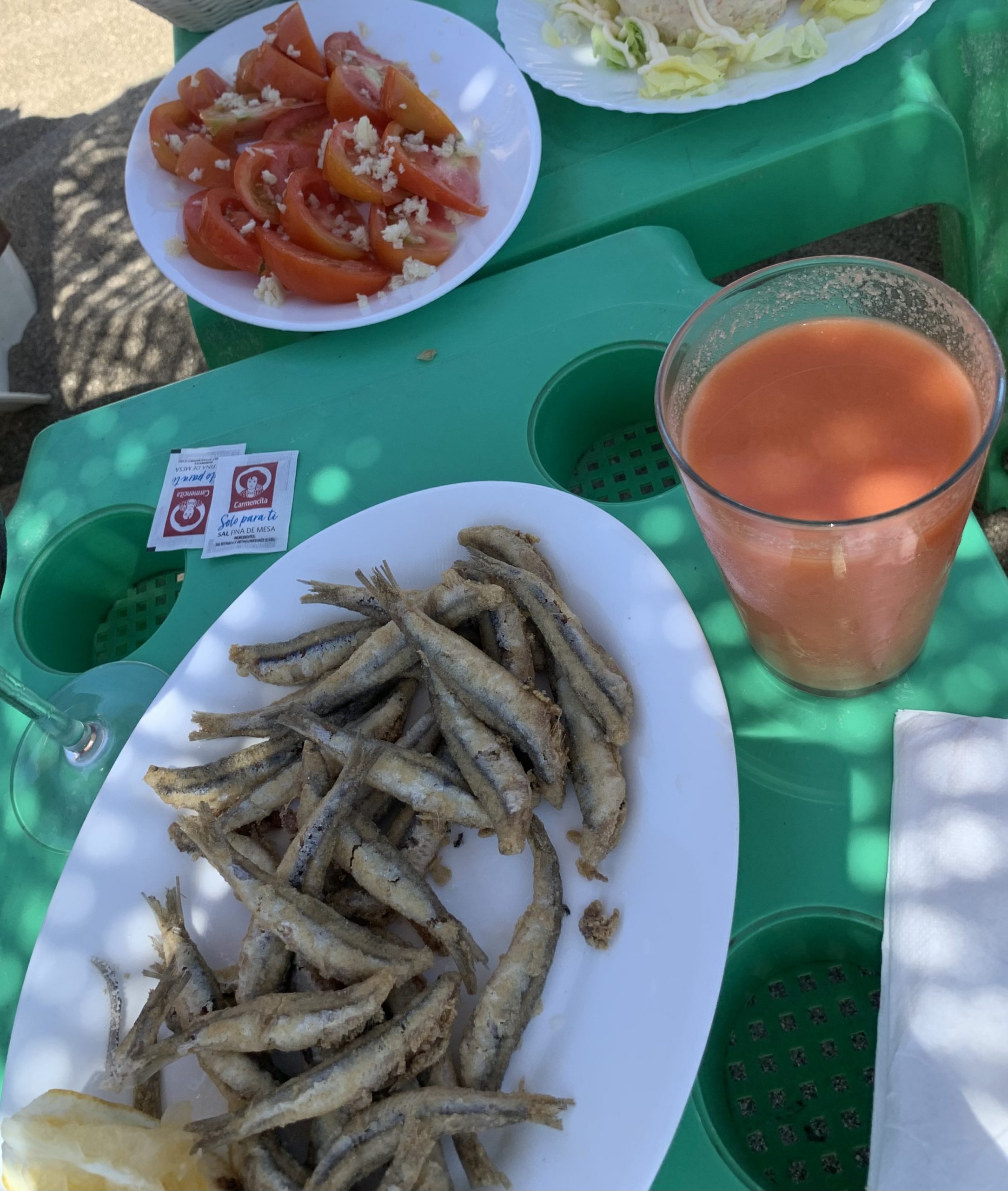 The Costa del Sol is also famed for its gazpacho, or better said, the many gazpachos such as ajoblanco (garlic and almond), salmorejo (much thicker and made with tomatoes only), porra antequerana (with eggs and tomatoes), pipirrana (with green peppers, cucumber, tomatoes and onion).